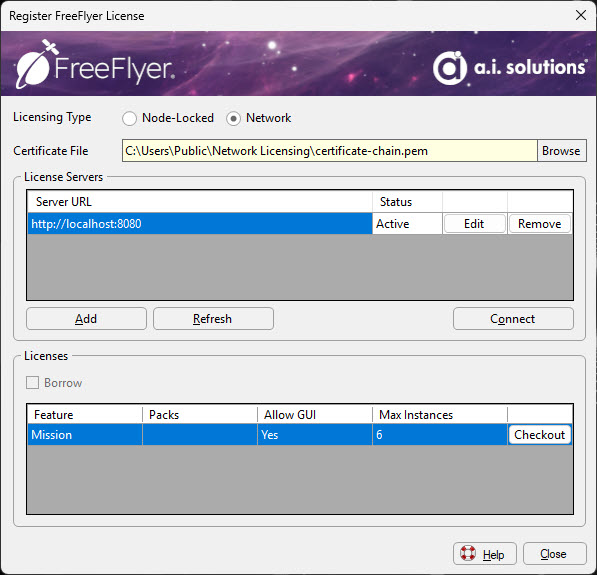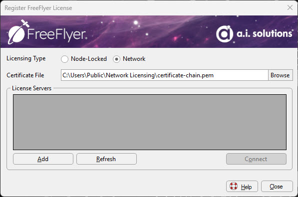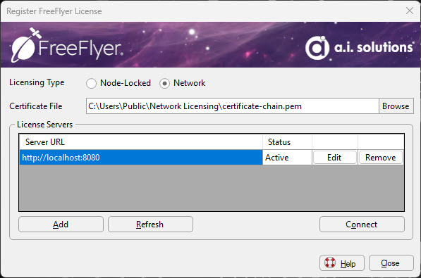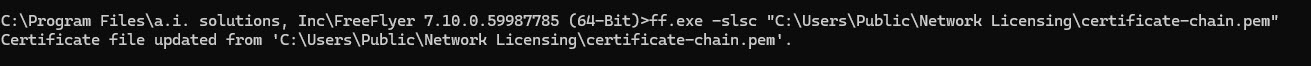 Note: System Administrator will need to ensure the certificate-chain.pem file is available on all user machines as it is needed to configure licensing in FreeFlyer.