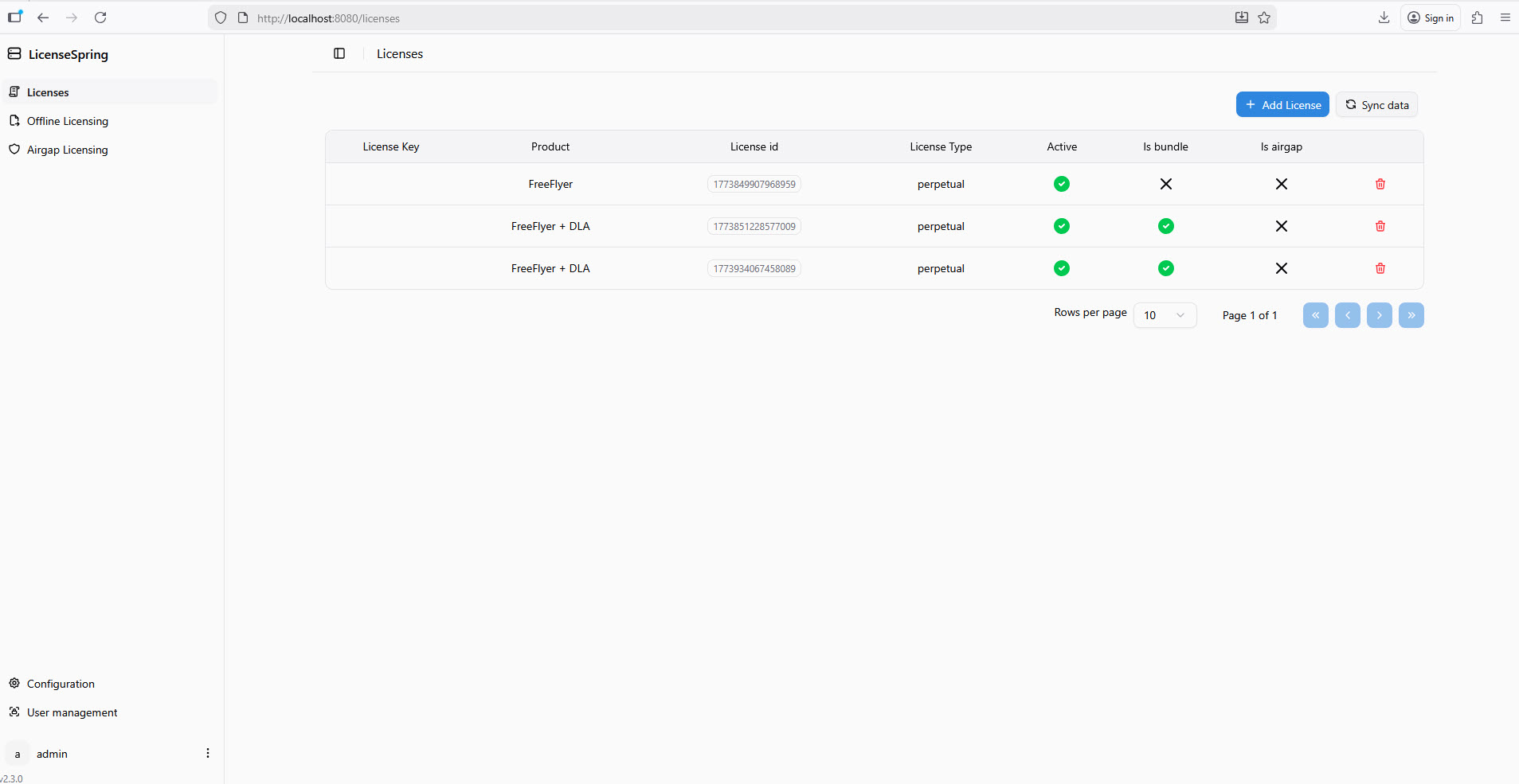 Once you have successfully activated your license key(s) you will see a summary of the license on the Licenses page of your License Server Manager.