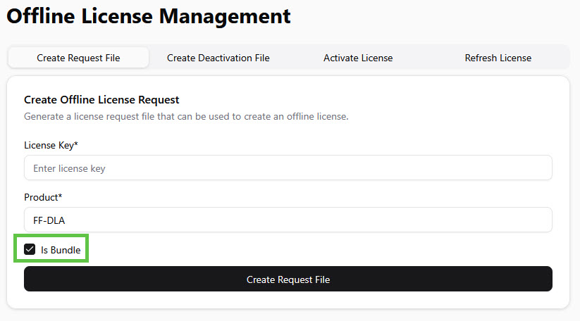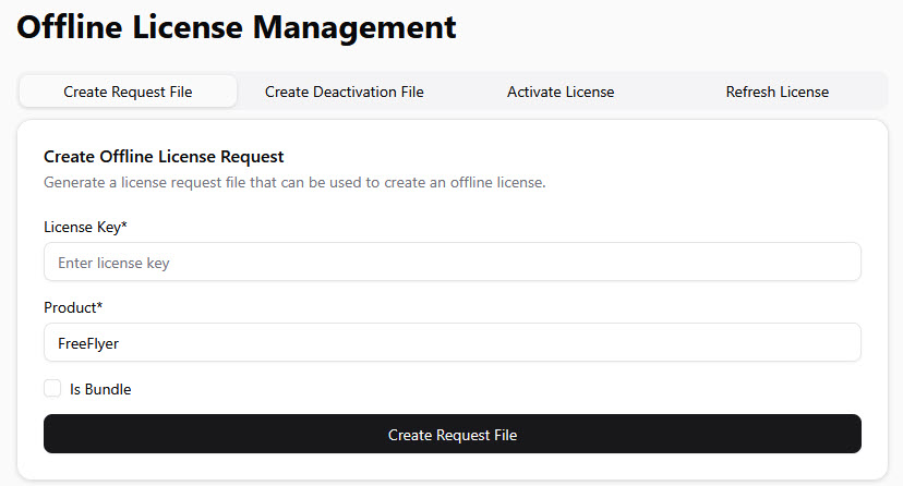4.From the online machine, upload the request file to the Offline Licensing portal at https://offline.licensing.ai-solutions.com/. This will generate a license activation file (.lic).