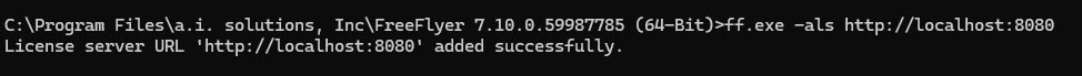 4.Using the server name and port specified by your System Administrator, use the add license server switch (-als) to add the license server.