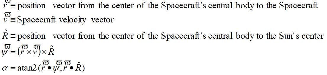 DescriptionReturns the times when the Spacecraft is at each of the cardinal points. The cardinal point calculations are based on the alpha angle, which is the angle between the Spacecraft's position and the Sun's position with respect to the Spacecraft's central body when both vectors are projected onto the Spacecraft's orbit plane. Note that the Sun is modeled as a point.
